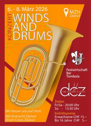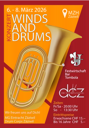 Dieses Jahr dürfen wir das Konzert zusammen mit der Jugendmusik Zäziwil und dem Drum Corps Zäziwil durchführen.